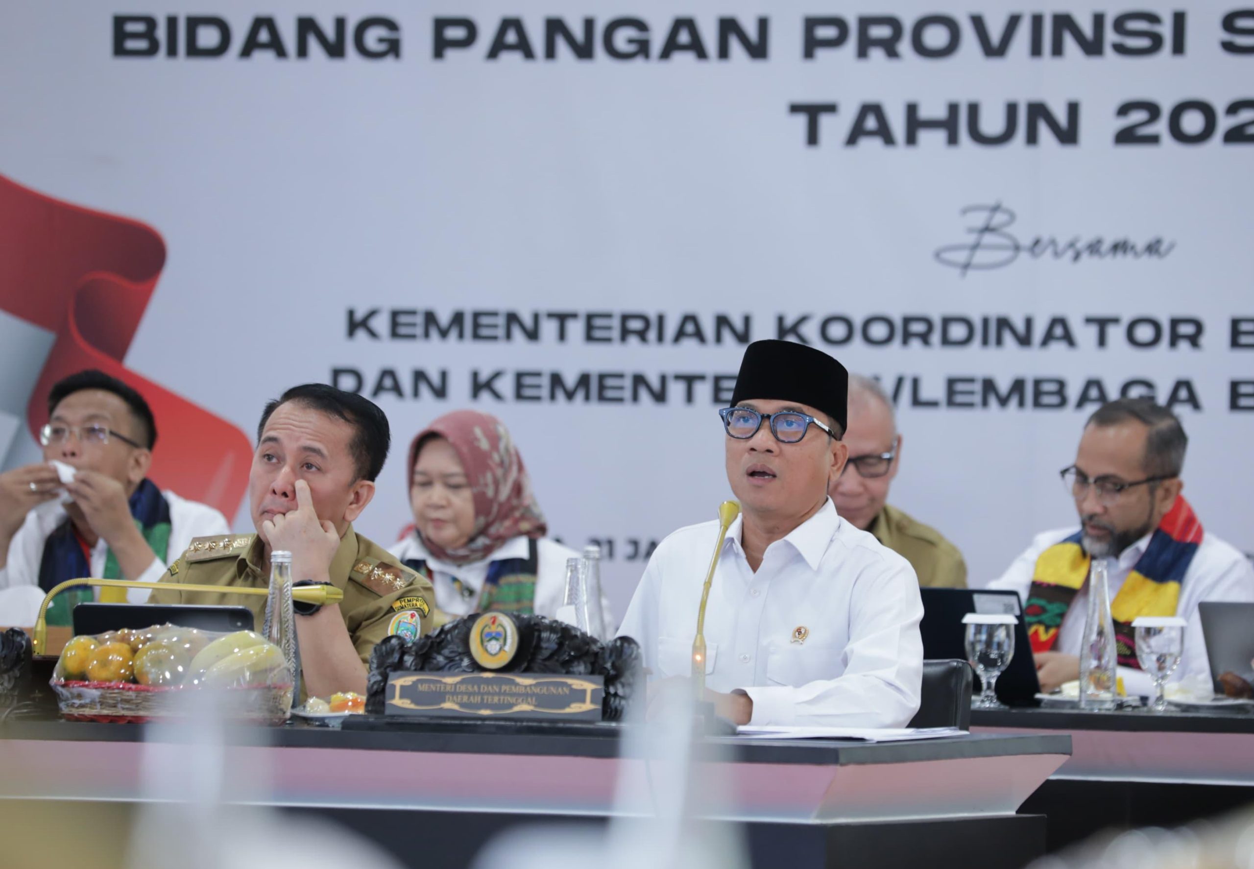 “Kami sudah MoU sama Pak Jaksa Agung agar kepala desa tolong diawasi. Jadi dana desa ada jejaknya,” ajak Mendes Yandri saat Rapat Koordinasi Bidang Pangan Provinsi Sumatera Utara Tahun 2025 bersama Kementerian Koordinator Bidang Pangan dan Kementerian/Lembaga Bidang Lainnya di Aula Tengku Rizal Nurdin Sumatera Utara, Selasa (21/1/2025).