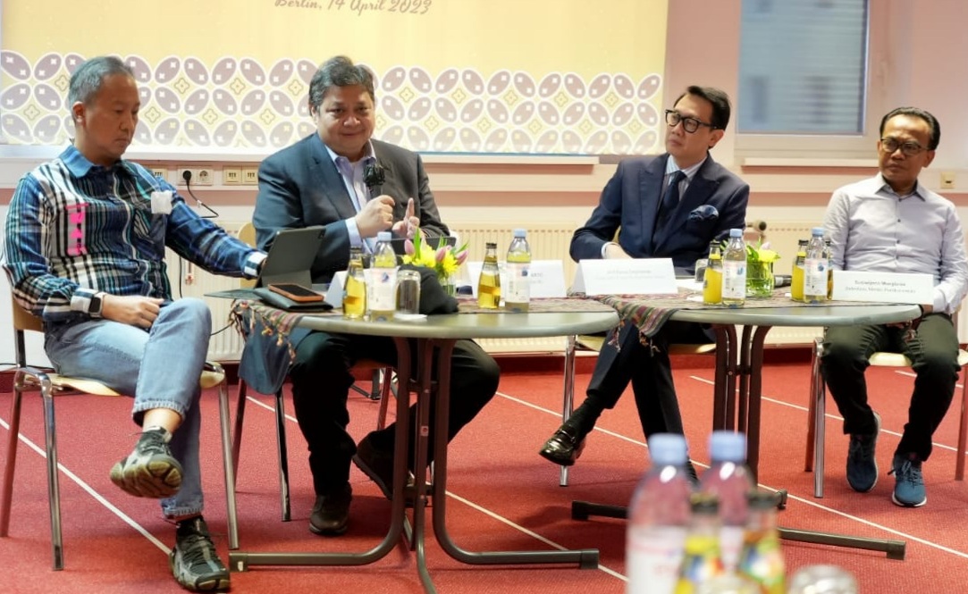Di sela-sela rangkaian kunjungan Kerja di Jerman untuk menghadiri pembukaan Hannover Messe 2023, Menteri Koordinator Bidang Perekonomian Airlangga Hartarto menyempatkan diri melakukan pertemuan dengan Diaspora Indonesia di Jerman, Sabtu (15/04) bertempat di Kedutaan Besar RI, Berlin. Mengawali pertemuan tersebut, Menko Airlangga menjelaskan terkait kondisi geopolitik global yang mempengaruhi harga energi dunia, hingga kebijakan Indonesia menyerap kenaikan harga dalam bentuk subsidi listrik dan bahan bakar minyak mencapai lebih dari Rp500 triliun.