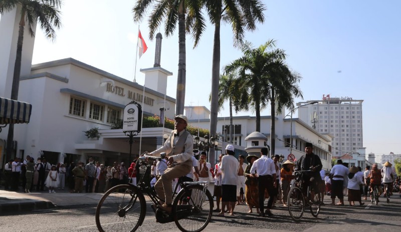 Dalam momen ini, Wali Kota Surabaya Eri Cahyadi terlihat memimpin jalannya pertunjukan yang dipusatkan di depan Hotel Majapahit. Bahkan saat itu, ia juga memimpin penghormatan kepada bendera merah-putih saat menyanyikan lagu kebangsaan Indonesia Raya.