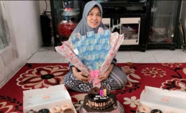 “Halaliah, di dalam acara ulang tahun mengucapakan terimakasih kepada anak-anak ku, dan mantu, cucu. Atas kehadiran ualang tahun kita dapat berkumpul bersama keluarga. Semoga kalian anak-anak ku, mantu dan cucu ku. Alloh berikan kesehatan semuanya dan selalu dalam lindungan Allah SWT,” ucap nenek dari delapan cucu.