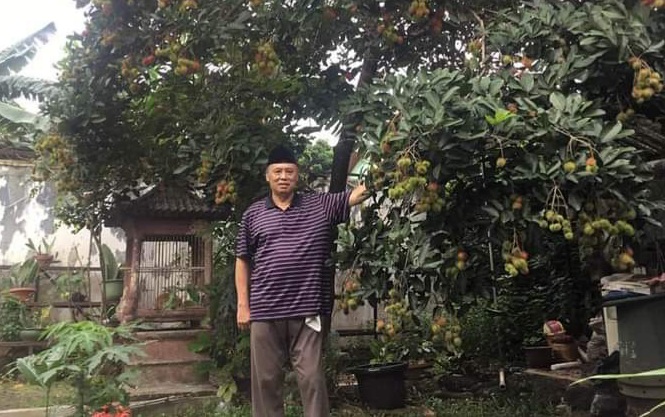 Pohon rambutan yang ada di halaman rumahnya memang sangat rindang sekali. Dan enak dipandang mata karena sedang musim berbuah dan sudah mulai masak dengan kombinasi warna-warni buahnya.