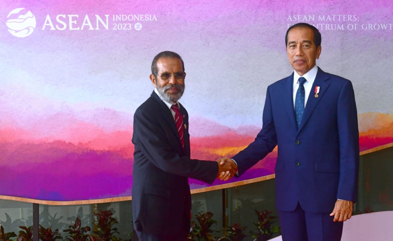 NTB – Presiden RI Joko Widodo (Jokowi) dan Perdana Menteri (PM) Timor-Leste Taur Matan Ruak menggelar pertemuan bilateral di Hotel Meruorah, Labuan Bajo, Manggarai Barat, Nusa Tenggara Timur (NTT), Selasa (09/05/2023). Mengawali pertemuan tersebut, Presiden Jokowi menyampaikan ucapan selamat datang kepada Timor-Leste atas keikutsertaannya dalam Konferensi Tingkat Tinggi (KTT) ke-42 ASEAN.