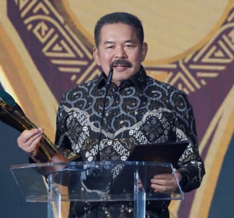 Dalam sambutannya, Burhanuddin mempersembahkan penghargaan tersebut kepada seluruh jaksa di Indonesia.