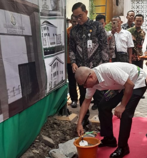 Dalam acara itu, JAM Intel Prof Reda Manthovani juga meletakan batu pertama sekaligus menandatangani batu prasasti pembangunan gedung KPN Kejari Jakarta Pusat. (Ramdhani)