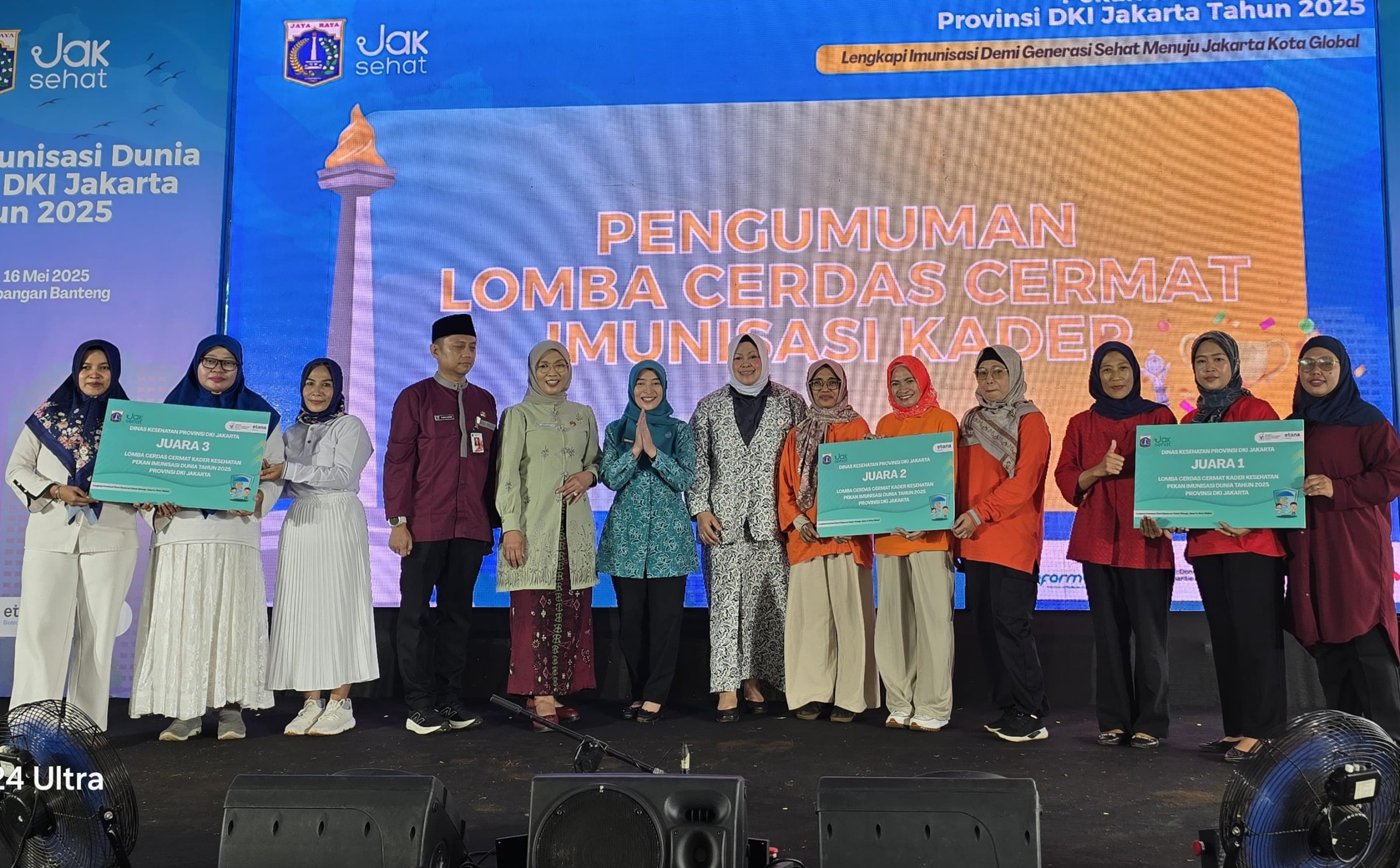 JAKARTA – Kader Posyandu Kecamatan Cempaka Putih perwakilan Jakarta Pusat berhasil meraih juara kedua lomba Cerdas Cermat dalam Pekan Imunisasi Dunia Provinsi DKI Jakarta Tahun 2025 yang berlangsung di Taman Lapangan Banteng.