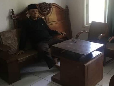 KH. As’ad Said Ali menceritakan kenangan tentang meja dan kursi tua peninggalan orang tuanya saat sedang duduk di kursi tua di rumahnya.