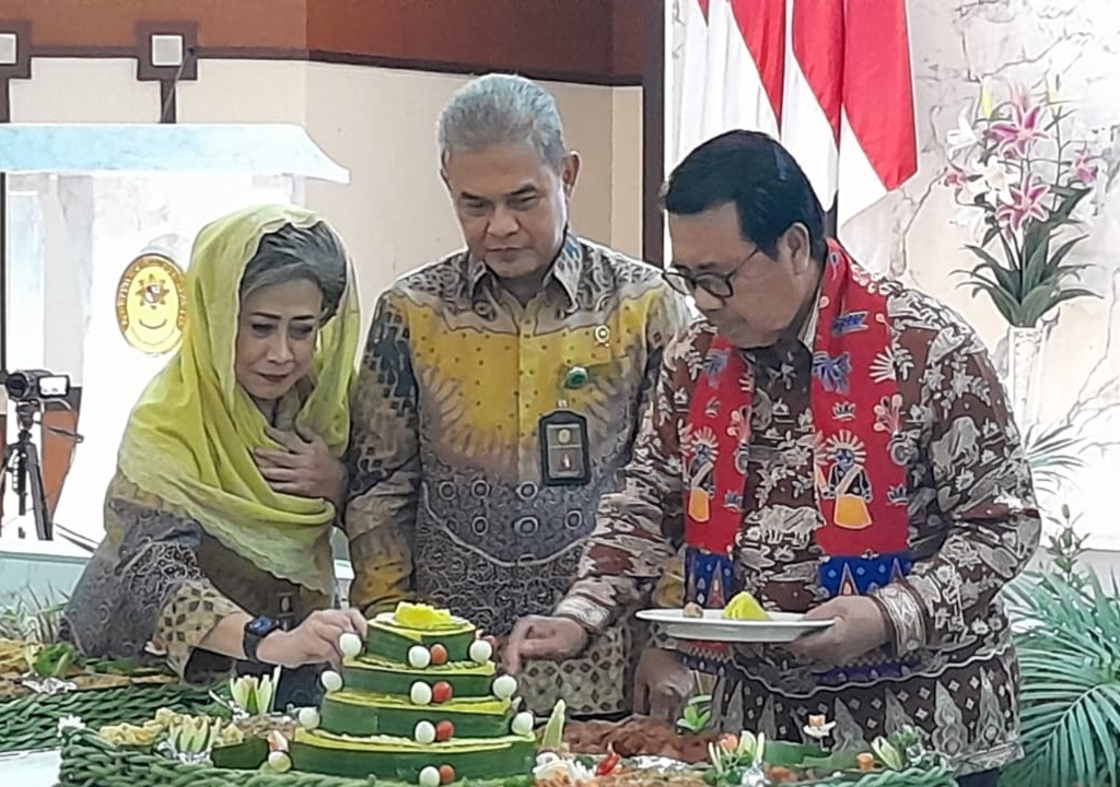 Acara dilanjutkan dengan pemotongan tumpeng dan pemotongan pita oleh Ketua MA Prof Dr H. M. Syarifuddin SH, MH didampingi Wakil MA Bidang Yudisial, Dr H. Sunarto SH, MH dan Ketua PT Jakarta Dr Herri Swantoro SH, MH bersama Wakilnya Dr. Artha Theresia SH, MH. (Ramdhani)