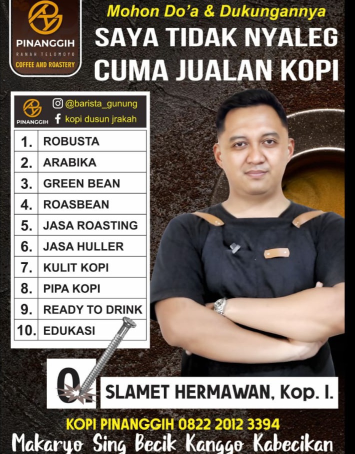 Slamet Hernawan, atau akrab disapa Wawan, adalah sosok inspiratif di balik merek Kopi Pinanggih. Pada tahun 2021, Wawan tercatat sebagai Pemuda Pelopor tingkat Kabupaten Semarang. Alumni SMK Negeri 2 Salatiga ini mulai merintis usaha kopi pada 2019 di kampung halamannya, Dusun Jerakah, Desa Kebondowo, Kecamatan Banyubiru. “Kopi Pinanggih adalah kopi khas Dusun Jerakah yang memiliki cita rasa berbeda karena diolah secara mandiri dari pohon hingga menjadi produk siap konsumsi,” ujar Wawan. Dalam wawancara dengan Nasionalnews.co.id, Senin (12/5).