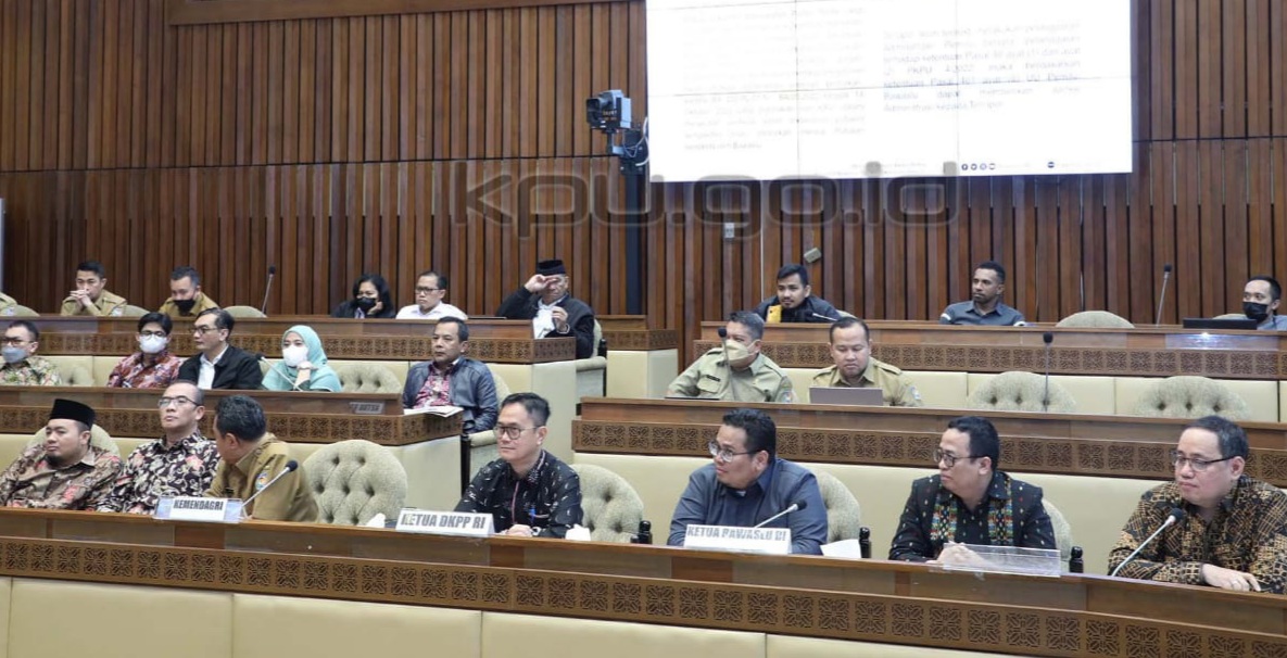 Jakarta – Komisi Pemilihan Umum (KPU) kembali mengikuti rapat kerja bersama Komisi II DPR, Kemendagri serta Bawaslu dan DKPP, di Ruang Rapat Komisi II DPR, Senin (3/4/2023).