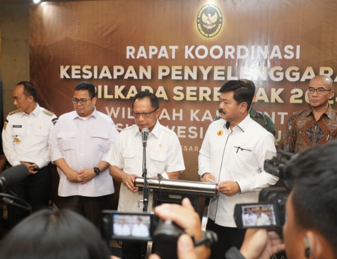 Makassar, – Menteri Dalam Negeri (Mendagri) Muhammad Tito Karnavian meminta pemerintah daerah (Pemda) di wilayah Kalimantan, Sulawesi, dan Maluku untuk memaksimalkan dukungan sarana dan prasarana penyelenggaraan Pilkada Serentak 2024. Dukungan ini diharapkan dapat diberikan kepada Komisi Pemilihan Umum Daerah (KPUD) dan Badan Pengawas Pemilu (Bawaslu) Daerah.