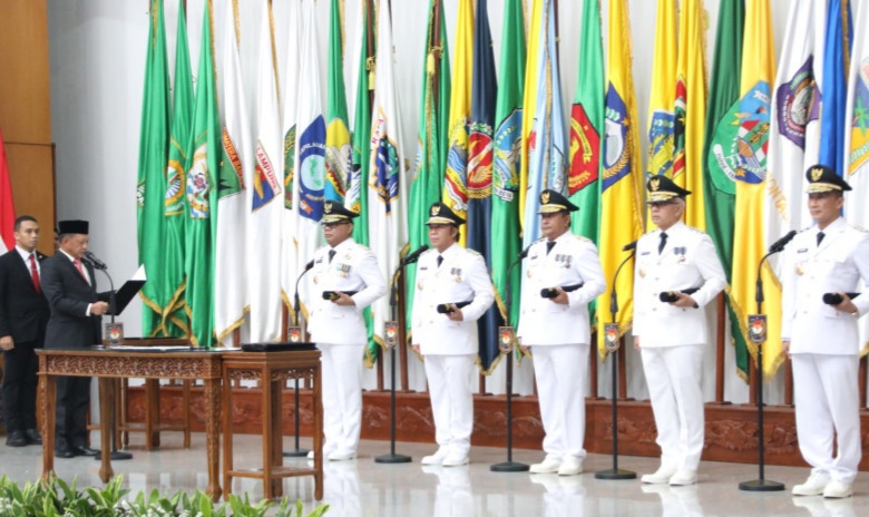 Jakarta, – Menteri Dalam Negeri (Mendagri) Muhammad Tito Karnavian resmi melantik lima Penjabat (Pj.) Gubernur pada Jumat (17/5/2024) pagi. Upacara pelantikan berlangsung di Gedung Sasana Bhakti Praja, Kantor Pusat Kementerian Dalam Negeri (Kemendagri), Jakarta.