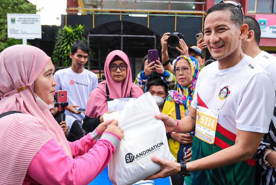 Padang, – 9 September 2023 – Menteri Pariwisata dan Ekonomi Kreatif/Kepala Badan Pariwisata dan Ekonomi Kreatif (Menparekraf/Kabaparekraf) Sandiaga Salahuddin Uno menyerahkan bantuan sembako kepada sejumlah pelaku UMKM di Kota Padang, Sumatra Barat (Sumbar).
