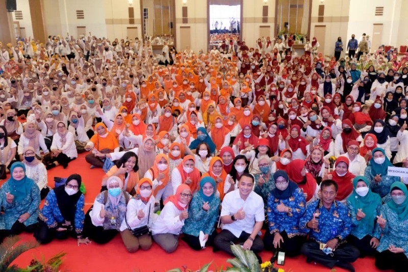 SURABAYA | NASIONALONLINE.ID – Wali Kota Eri Cahyadi bersama Ketua Tim Penggerak (TP) PKK Kota Surabaya Rini Indriyani kembali menggelar silaturahmi rutin bersama Kader Surabaya Hebat (KSH). Karenanya, untuk membantu Pemkot Surabaya dalam melakukan penginputan data melalui aplikasi Sayang Warga, mulai bulan Agustus 2022 para KSH di setiap RT akan didampingi oleh satu ASN.