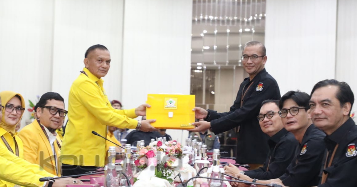JAKARAT – Partai Golongan Karya (Golkar) mengajukan Bakal Calon Anggota DPR RI Pemilu Tahun 2024, Minggu (14/5/2023) di Kantor KPU. Pengajuan dilakukan oleh Sekretaris Jenderal Lodewijk F Paulus didampingi Wakil Ketua Umum Ahmad Doli Kurnia Tandjung serta Nurul Arifin, pada pukul 20.29 WIB.