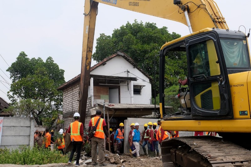 “Lebar lahan yang kita bongkar saat ini di Tambak Sarioso sekitar 35 – 40 meter, disesuaikan dengan Detail Engineering Design (DED) dengan eksisting yang ada terlebih dahulu untuk digunakan rumah pompa,” jelasnya.