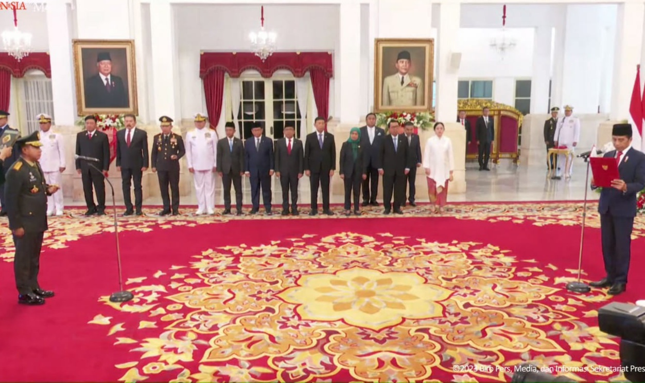 JAKARTA, – Presiden RI Joko Widodo (Jokowi) melantik Jenderal Agus Subiyanto sebagai Panglima TNI, Rabu (22/11/2023) pagi, di Istana Negara, Jakarta. Pelantikan Agus Subiyanto dilakukan berdasarkan Keputusan Presiden (Keppres) Nomor 102/TNI Tahun 2023 tentang Pemberhentian dan Pengangkatan Panglima Tentara Nasional Indonesia yang ditetapkan di Jakarta tanggal 22 November 2023.