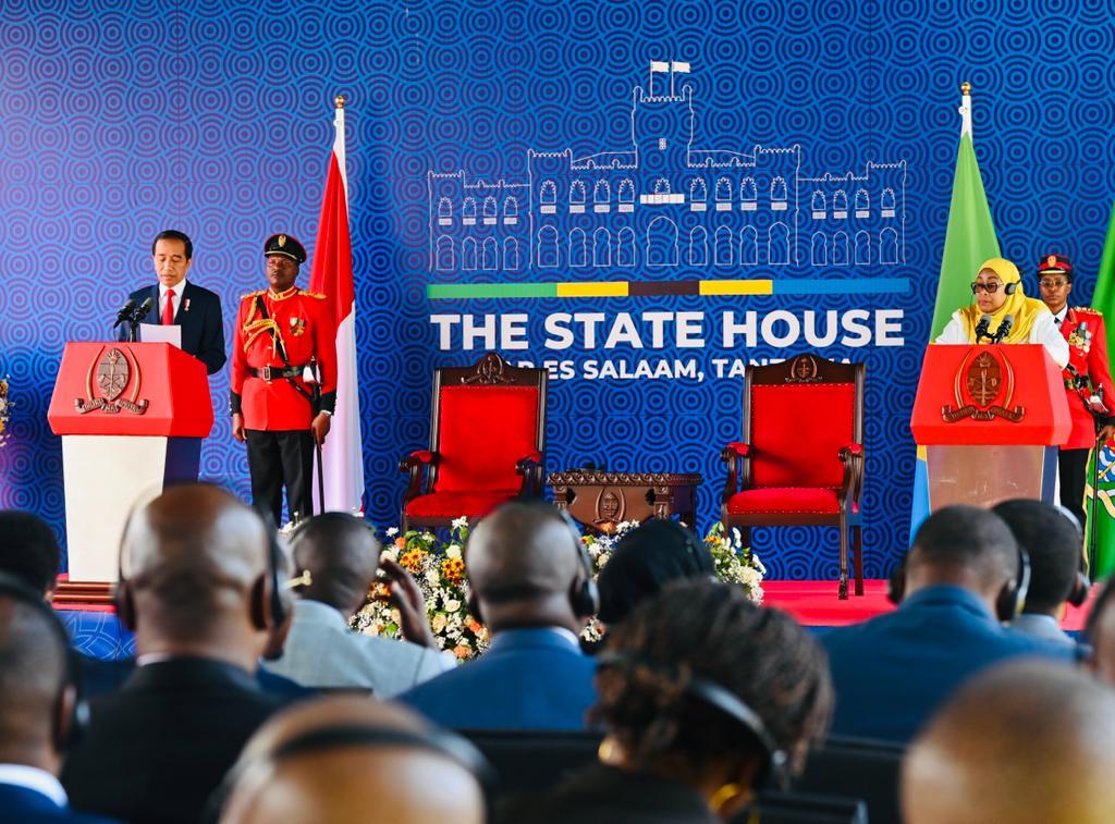 Presiden Jokowi memberikan keterangan persnya setelah pertemuan bilateral bersama Presiden Samia Suluhu Hassan di Dar Es Salaam State House, pada Selasa (22/08/2023). (Foto: BPMI Setpres/)