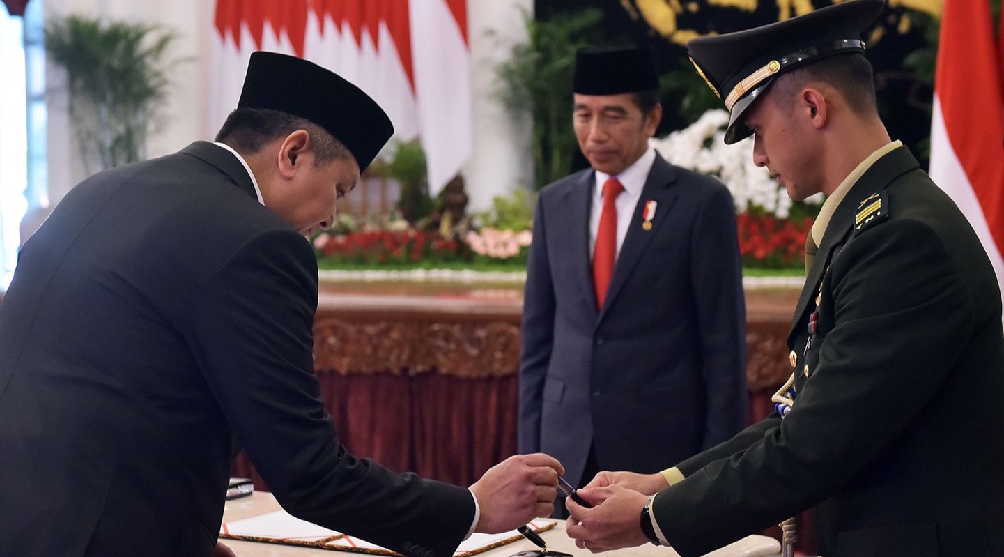 JAKARTA, Presiden RI Joko Widodo (Jokowi) melantik Komjen Rycko Amelza Dahniel sebagai Kepala Badan Nasional Penanggulangan Terorisme (BNPT), Senin (03/04/2023), di Istana Negara, Jakarta. Pelantikan dilakukan bersamaan dengan pelantikan Ario Bimo Nandito Ariotedjo atau Dito Ariotedjo sebagai Menteri Pemuda dan Olahraga (Menpora).
