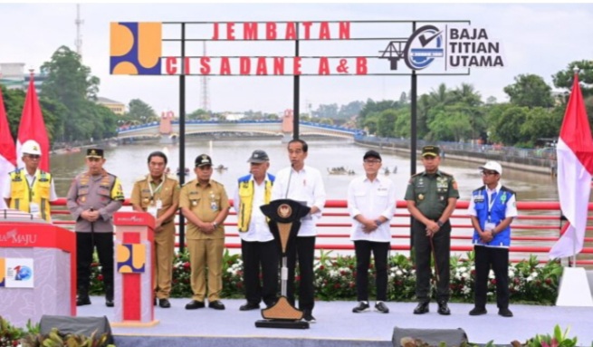“Dengan mengucap bismillahirrahmanirrahim, pada sore hari ini saya resmikan Jembatan Cisadane A dan B, Jembatan Batu Ceper Kota Tangerang, dan Jembatan Tawing 1 Kabupaten Serang,” ucap Presiden dalam sambutannya saat peresmian yang dipusatkan di Jembatan Cisadane, Kota Tangerang, Provinsi Banten.