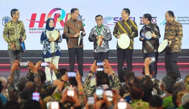 JAKARTA – Ketua MPR RI sekaligus Wakil Ketua Umum Partai Golkar Bambang Soesatyo bersama Menkominfo Budi Arie Setiadi, Menteri Sekretaris Kabinet Pramono Anung, Ketua Dewan Pers Ninik Rahayu serta Ketua Umum Persatuan Wartawan Indonesia (PWI) Pusat Hendry Ch Bangun, mendampingi Presiden Joko Widodo membuka Puncak Peringatan Hari Pers Nasional 2024. Sekaligus mengapresiasi langkah Presiden Joko Widodo yang telah menandatangani Peraturan Presiden terkait Regulasi Hak Cipta Penerbit atau Publisher Right. Serta memprioritaskan belanja iklan pemerintah kepada perusahaan pers sebagai kebijakan afirmatif dalam menumbuhkembangkan usaha pers di dalam negeri.