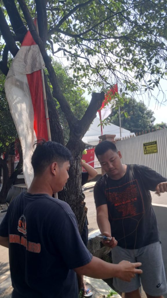 Pemasangan bendera untuk menyambut hari kemerdekaan bangsa indonesia kini tepat nya, di Jalan H. Samali, gang sempit, kelurahan pejaten barat, jakarta – selatan. Para pemuda generasi penerus bangsa dengan semangat memasang bendera di sekitar wilayah RT 17 RW 01, pejaten barat, jakarta – selatan.