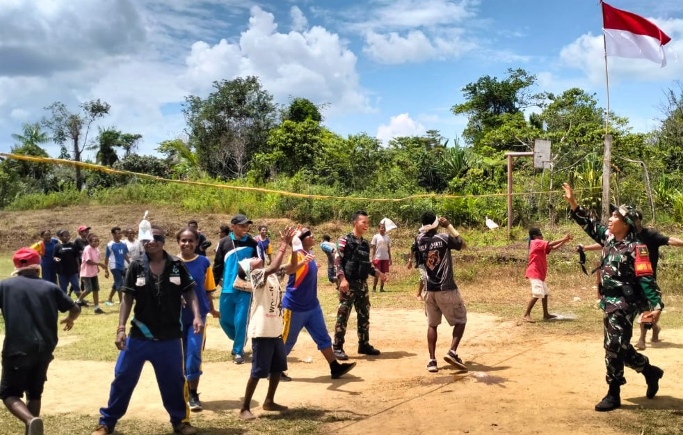 KEEROM ~ Satgas Yonif 310/KK mengadakan perlombaan bagi anak anak perbatasan dalam rangka memeriahkan HUT RI ke 78 di Kampung Yuruf Distrik Yaffi Kab. Keerom, Papua, Rabu (16/08/2023)
