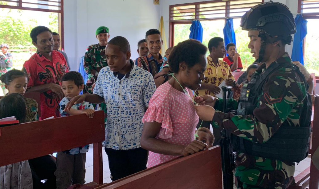 “Kita hadir dengan 10 personel untuk melaksanakan ibadah sekaligus pengamanan perbatasan di Gereja Katolik St. Antonius di wilayah Distrik Senggi,” ujar As’ari.