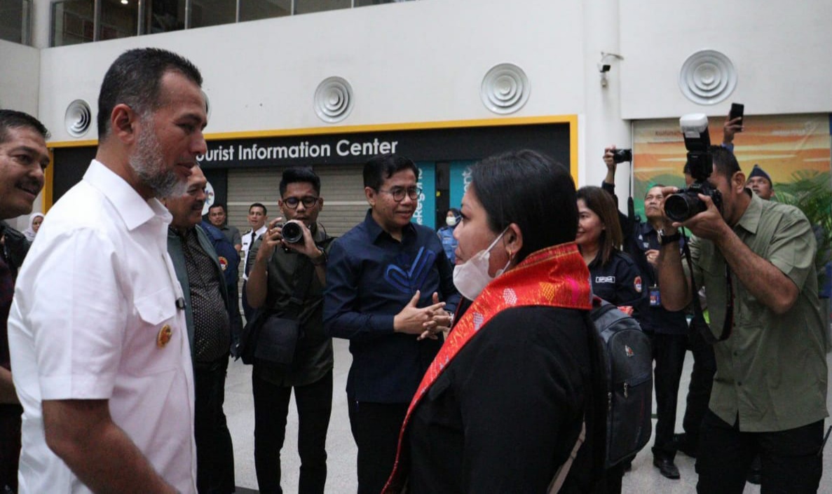 Deli Serdang – Wakil Gubernur (Wagub) Sumatera Utara (Sumut), Musa Rajekshah, bersama Deputi Bidang Penempatan dan Pelindungan Kawasan Amerika dan Pasifik (APIK) Badan Pelindungan Pekerja Migran Indonesia (BP2MI), Lasro Simbolon, menyambut kedatangan para Pekerja Migran Indonesia (PMI) di Pintu Keluar Kedatangan Internasional Bandara Kualanamu, Sumatera Utara.